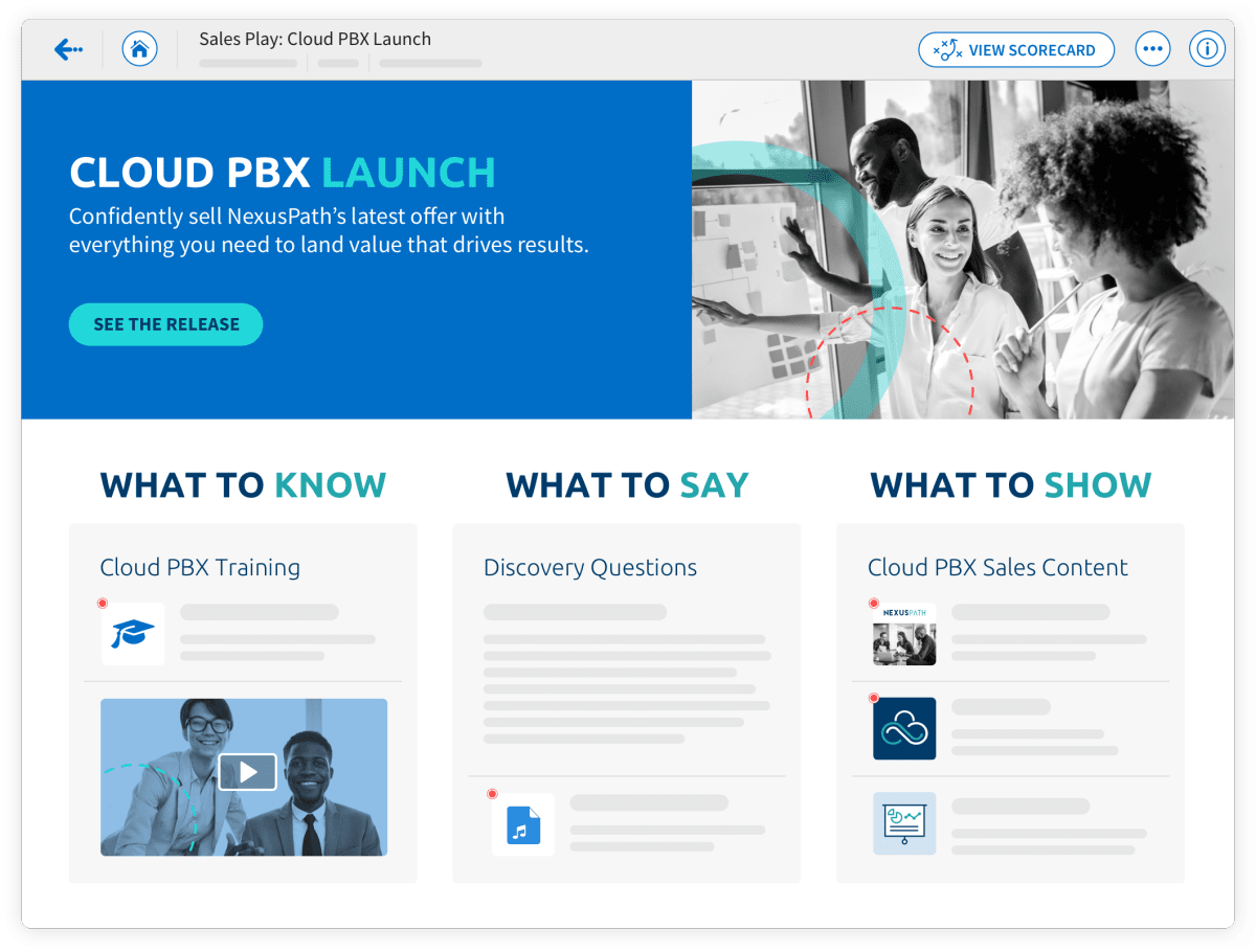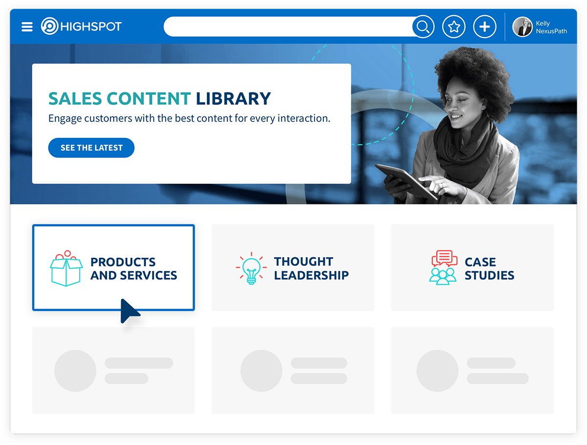 Highspot 直觀的用戶界面、強大的搜索和精心策劃的瀏覽體驗使銷售代表可以輕松地在一個平臺上找到所有內容。