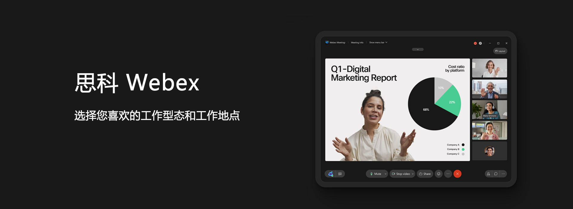 公有云上海華萬科技為國內企業提供思科WebEx視頻會議及協作辦公一站式解決方案。官方授權代理,支持靈活部署方案定制及專屬數據安全服務,保障企業級高清會議、實時文檔協作與云錄制功能,兼容騰訊會議、電子簽等多平臺集成。立即咨詢,免費體驗WebEx會議系統30天!