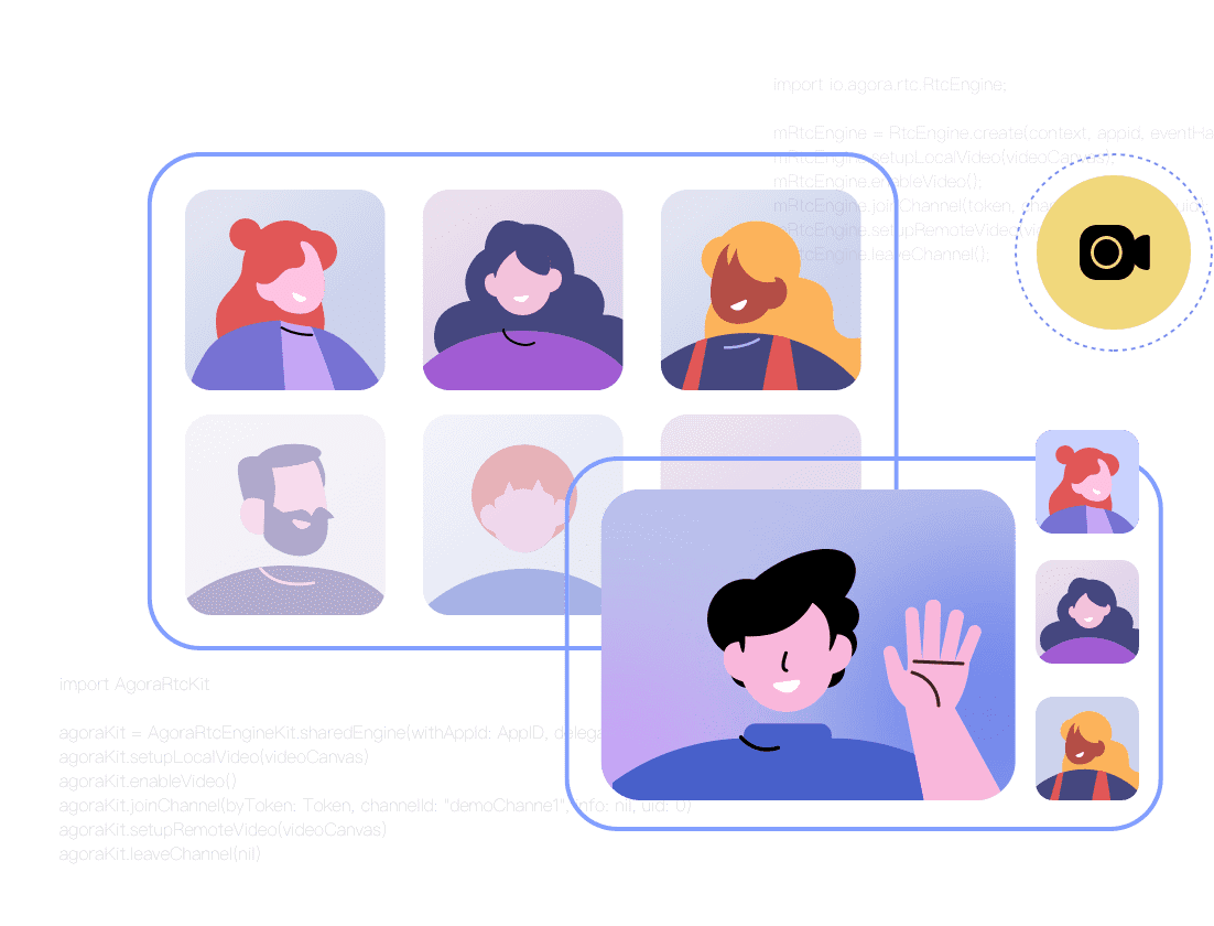 調用 API,快速實現多種實時視頻通話場景,高清視頻會議,全球化部署,百萬人同時在線,可實現隨時隨地的遠程會議溝通協作。